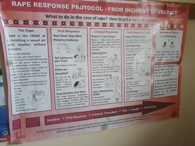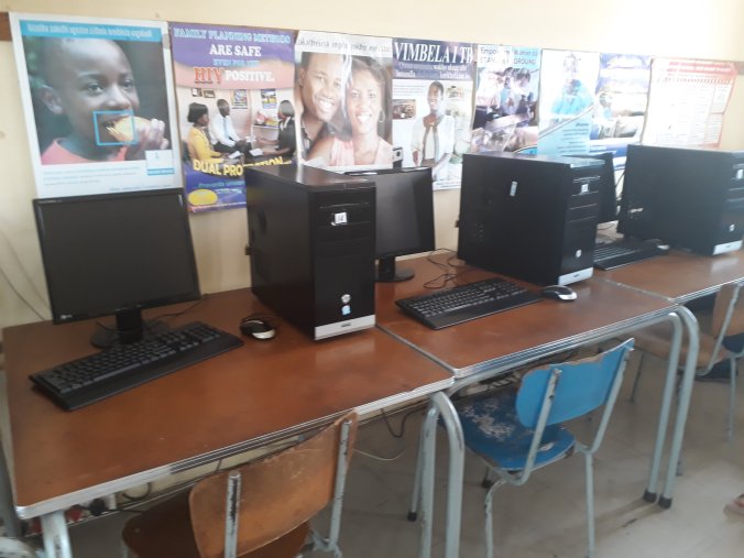 Our tour takes in a classroom for dress making and another that is a computer suite. Around the walls are posters for AID’s awareness, avoiding communicable diseases, how to respond to rape, and gender justice. We are informed that students come to learn computers but they are also taught life skills such as AID’s awareness, cooking, communicable diseases, washing and more. It is not clear whether students come with the expectation of learning these additional life skills of whether the college sees fit to add them onto their training because of their view that they are essential.