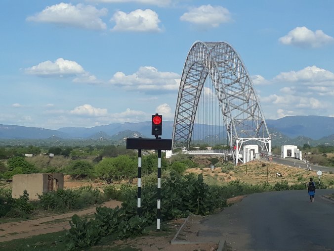 We drive on. More sleep, more stops for cows, goats and police. We pass villages of traditional rondovals and newer brick built homes. Our next toilet stop is just before we cross the Birchenough Bridge. We pull into some kind of hotel or guest house. There are sprinklers on in the garden and someone comments they want to run through to cool down. I agree, suggesting we go for it, they reply that I must be feeling better if I am ready to do this kind of thing again. I agree. We cool off beneath the spray of a sprinkler, well a plastic bottle with holes attached to the end of a hose pipe!