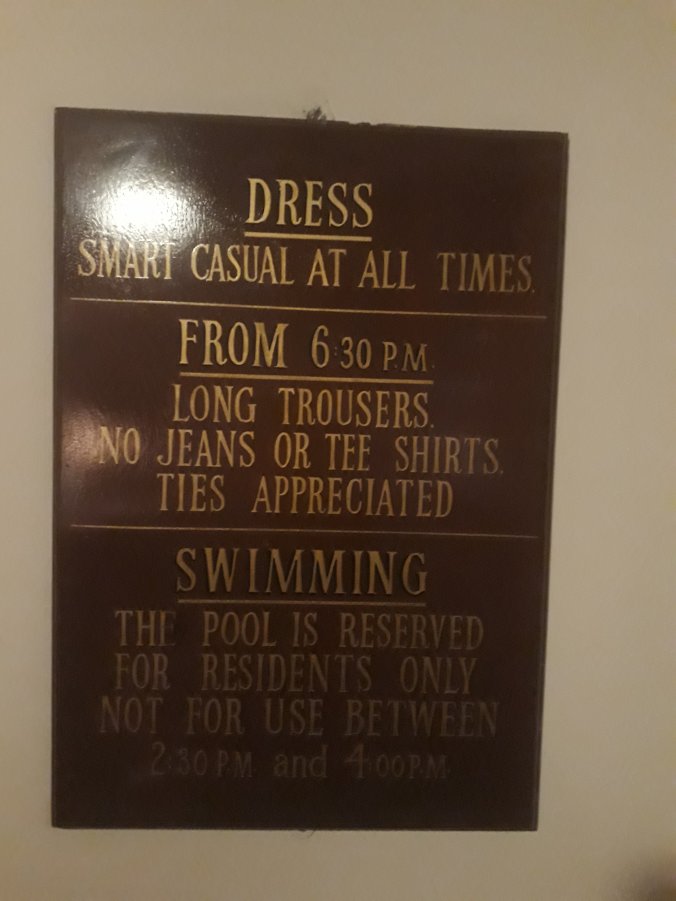 We arrive at our destination, the White Horse Inn; something of a guest house or motel. It is somewhat dated and tells something of the story of the colonial past and likely ex-pats coming for holidays. It is however very pleasant. I am sharing a cottage with out driver and have what is at least a family sized room (double bed, 2 singles and a sofa bed) to myself. Although the wifi does not reach my room I am able to connect in the main Inn and catch up with family. The sound of crickets and insects fills the air. Although I am feeling better I stick to a safe dinner of soup and bread, adhering to the sign on the wall that notes “From 6:30pm long trousers, no jeans or tee shirts, ties appreciated.”