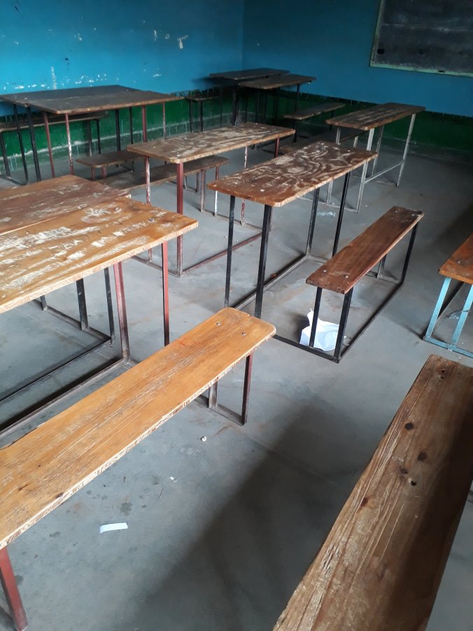Rev. Gaga shows us to the school. First he introduces us to his daughter who works at the school and the head master who comes over to greet us. We see the administration office and the library. Then, as we are moving on to see the school hall and some classrooms Rev. Gaga introduces his daughter to me saying “she is very beautiful and very single”, I point out that I am very married already to a very beautiful wife. The school is basic and there are some significant repairs required. The ceiling in the classroom has series signs of damp with holes and bits of ceiling hanging down.
