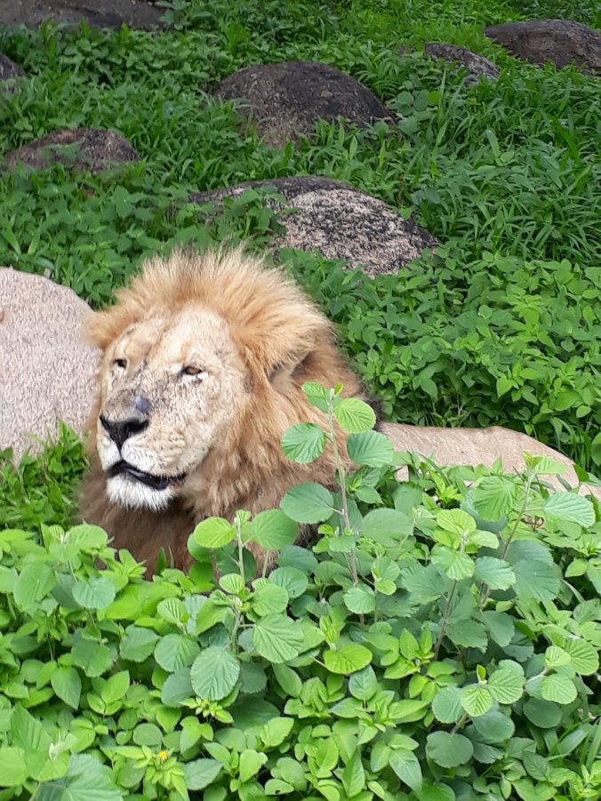 After Snake Park we visit Lion Park. This begins with a drive through the lion enclosure in the minibus. We are quite excited when we see a couple lions on the opposite side of a fence. We are able to get out of the bus and take a few photos. Then the gate is open and we drive into the enclosure. The lions are now quite close to us and we are thrilled at how close we are able to get. Having not see lions on safari earlier in the week this certainly makes up for it. The rest of the park is much more like a zoo. There are enclosures with crocodile, chickens, rabbits, tortoise and lions (including white lions). Baboons run and climb around all over the place (though not in the lion enclosures) looking for food and being a nuisance. I am particularly found of the Galapagos Tortoise named Tommy who, we are informed, is estimated to be around 340 years old.