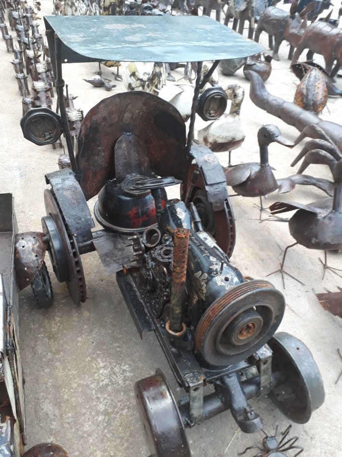 It is the same at every stall. The boundary between stalls is respected but as soon as you pass from one to another the owner of the stall, selling many of the same and items, begins with the same spiel all over again. To begin with it is fun, but before long it becomes wearing, though I love the banter and the bartering once the shopping begins. I’m not after anything in particular but love the sounds, smells, colours, creativity and buzz of the market. There are wonderfully carved stone and wooden ornaments, paintings, beautiful fabrics, beaded artefacts, wire sculptures, brightly coloured shirts and dresses, objects made of recycled bottle tops or drinks cans. Although many stalls look similar there are occasional unique items. I check prices on a few things as I walk around, seeing what kind of price people are offering as a starting point. As I approach one stall the stall holder says something to a friend and they both erupt in laughter, I am told by the friend that the stall holder has said she is planning to marry me. For the second time in three days I point out I’m already married and move on.